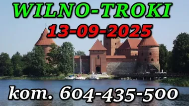 Organizowana jest jednodniowa wycieczka z Augustowa do Wilna i Trok, zaplanowana na 13 września 2025 roku. Wyjazd przewidziano rano, a powrót tego samego dnia wieczorem. W programie znajdują się zarówno zabytki Trok, jak i najważniejsze atrakcje historycznego centrum Wilna. Oferta obejmuje transport, opiekę pilota i przewodnika oraz podstawowe ubezpieczenie.