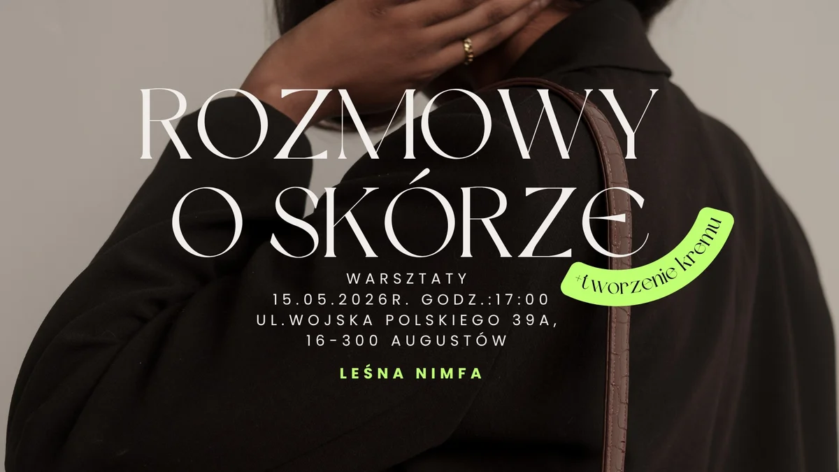 W Augustowie szykuje się spotkanie, które łączy kosmetologię, spokojną rozmowę i chwilę tylko dla siebie ROZMOWY O SKÓRZE to warsztaty, podczas których można lepiej poznać potrzeby swojej cery, nauczyć się czytać składy kosmetyków i stworzyć własny krem dopasowany do skóry. To propozycja na kameralne, praktyczne spotkanie — warto się wybrać.